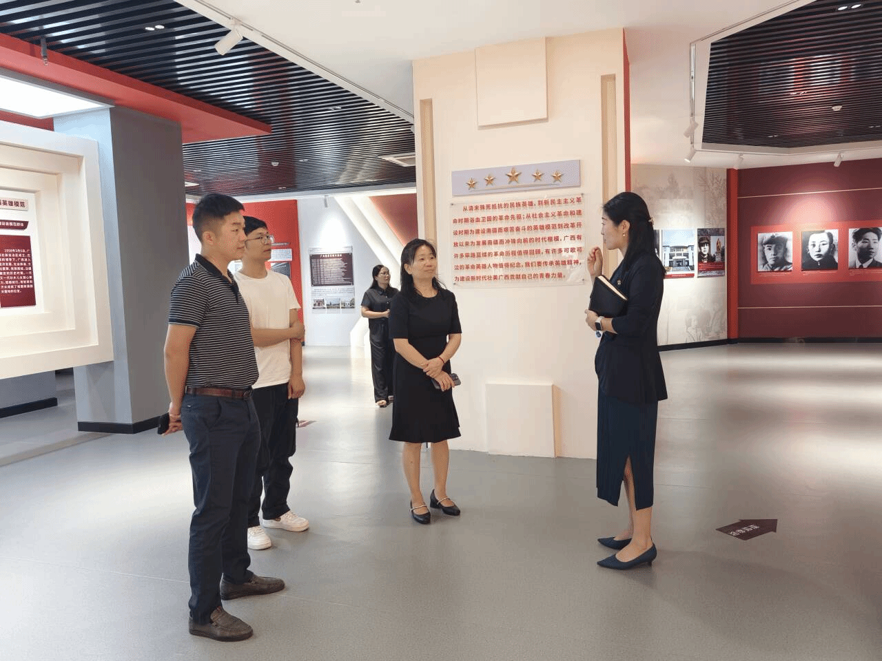 在南宁学院,马克思主义学院院长董艳教授介绍了学院发展、“大思政课”育人建设、教学竞赛、三全育人成效、学院特色工作等方面情况。学院致力于构建立体化育人新格局,全面增强“大思政课”引领力,紧密结合区情、聚焦实践,打造“一轴四翼”校内大思政育人特色品牌。思想政治理论课实践教学教研室叶文香主任结合校情,介绍了实践教学开展情况及竞赛经验。交流期间,我院交流团队还参观了英雄精神传承体验馆。