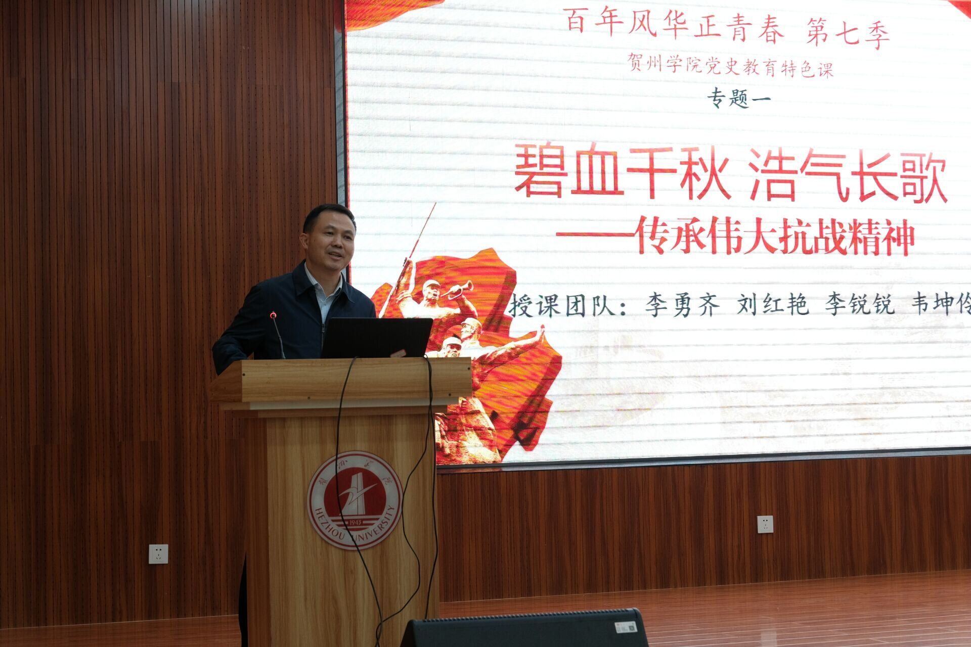 本次专题由学校党委书记李勇齐和马克思主义学院党委副书记、副院长刘红艳教授,以及李锐锐、韦坤伶、蓝蔚铭、聂文凯等教师组成联合授课团队,以抗战精神为主线展开系统性教学。