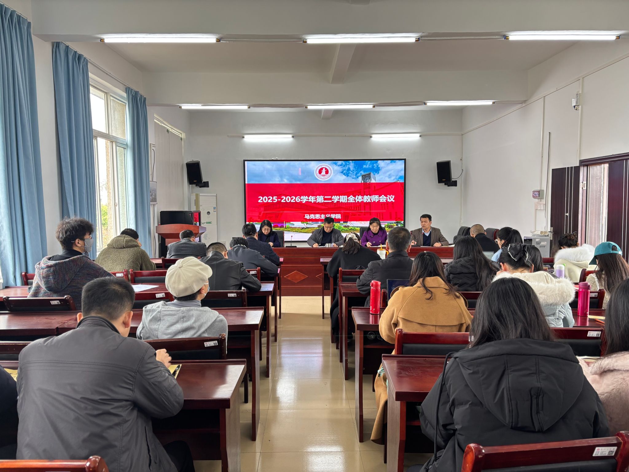 3月10日下午,马克思主义学院在崇师楼508会议室召开2025-2026学年第二学期全体教师会议。党委书记邓晖,院长吴庆华,副院长刘红艳、副院长覃康聪及马克思主义学院全体教师参加会议。